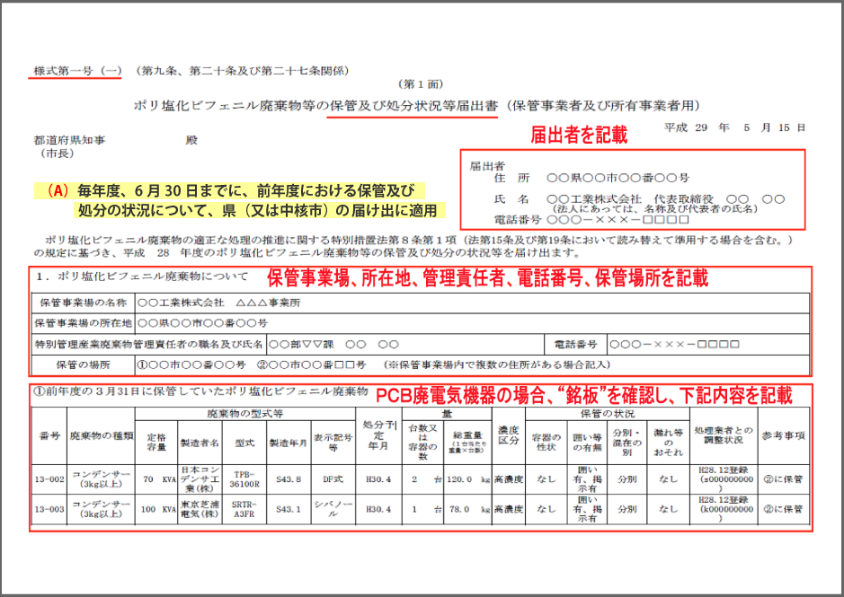 PCB特別措置法に基づくPCB廃棄物の保管等の届出