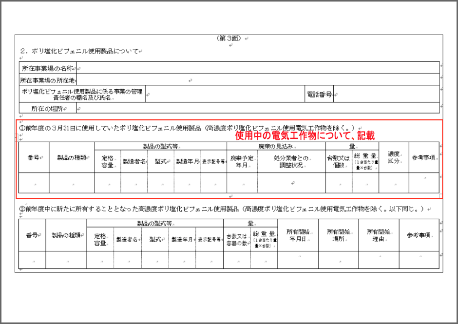 ※高濃度PCB使用製品については「廃棄年月日」を記載する必要があります。